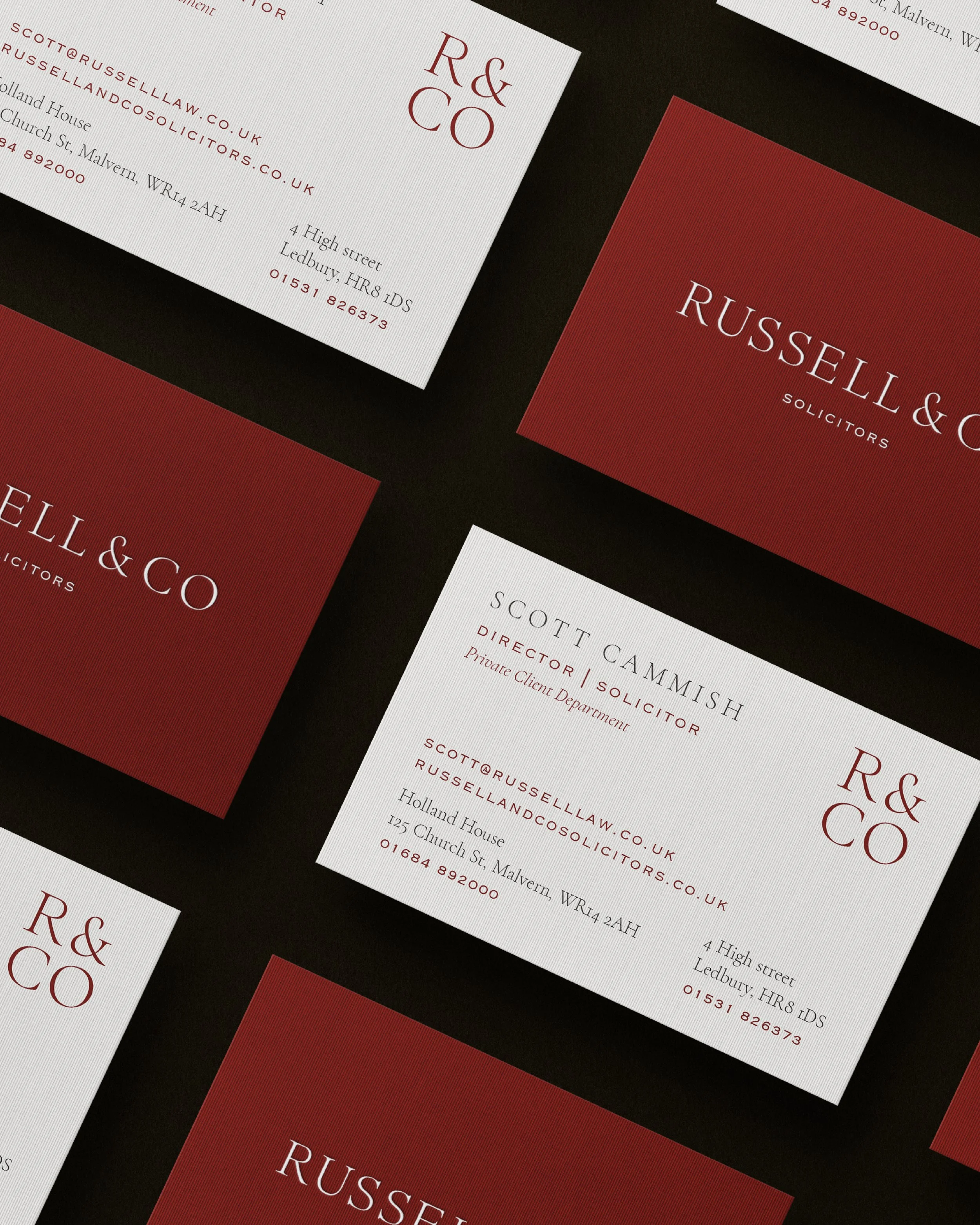 Russell & Co. Solicitors BrandingWebsite designSocial mediaLuxury printPhoto & video production 1 Feb Written By Wilson & Ward Creative RUSSELL & CO. SOLICITORSThe heritage of a traditional law firm with a modern approach Instagram Services providedBrand strategyBrand identityWebsite DesignBusiness stationeryLuxury print BrandingLogo DesignBrand StrategyLuxury printSquarespace websiteBusiness stationery Wilson & Ward Creative https://www.wilsonandward.com